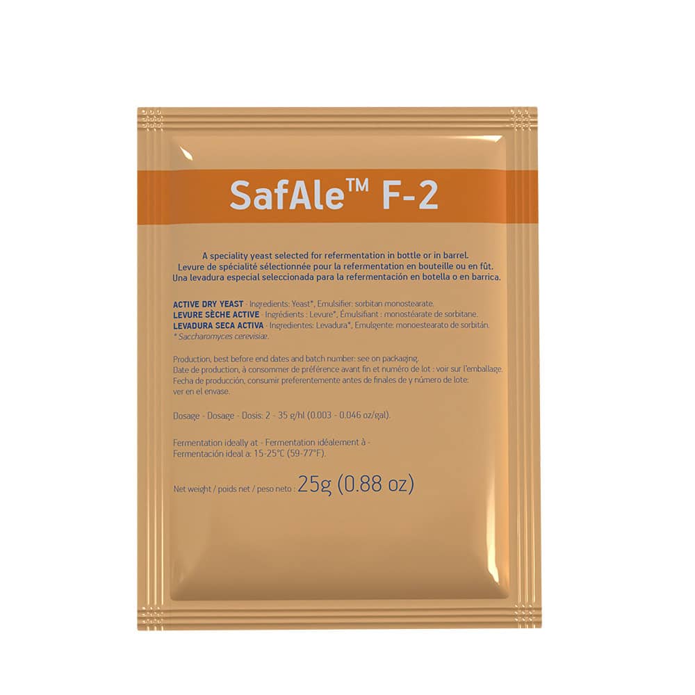 Fermentis SafAle™ F-2 (SafBrew F2) gist is speciaal ontwikkeld voor hergisting op fles en fust. Deze gist assimileert zeer weinig maltotriose, maar wel basissuikers (glucose, fructose, sacharose, maltose).